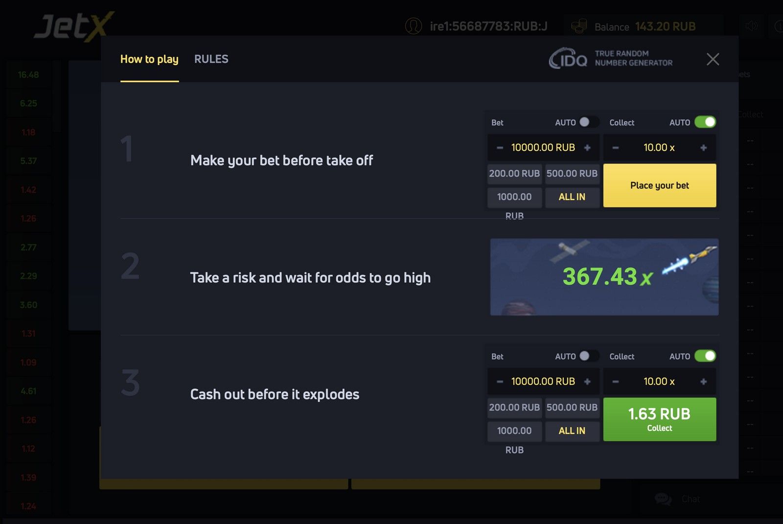 Oyunun yüklənməsi oyunçuları təyyarəmizin qalxmaq üzrə olduğu uçuş-enmə zolağına aparacaq. Oyunçular mərcləri nəticə başlamazdan əvvəl qoyurlar və hər raund üçün 0,1 dollardan 600 dollara qədər mərclər mövcuddur jet x. Sadəlik üçün təyyarəni çarpan əyrisi adlandıraq. O, raund başlayan kimi böyüməyə başlayır və ən təsirlisi odur ki, onun nə qədər yüksəklərə qalxa biləcəyinə heç bir məhdudiyyət yoxdur. Beləliklə, qalibiyyət dərəcəsi 0-dan sonsuza qədər dəyişir jetx. Lakin belə bir yüksəkliyə qalxmaq utopik ssenari olsa da, nəzəri cəhətdən hələ də mümkündür.Nəyi bilmək vacibdir jet x