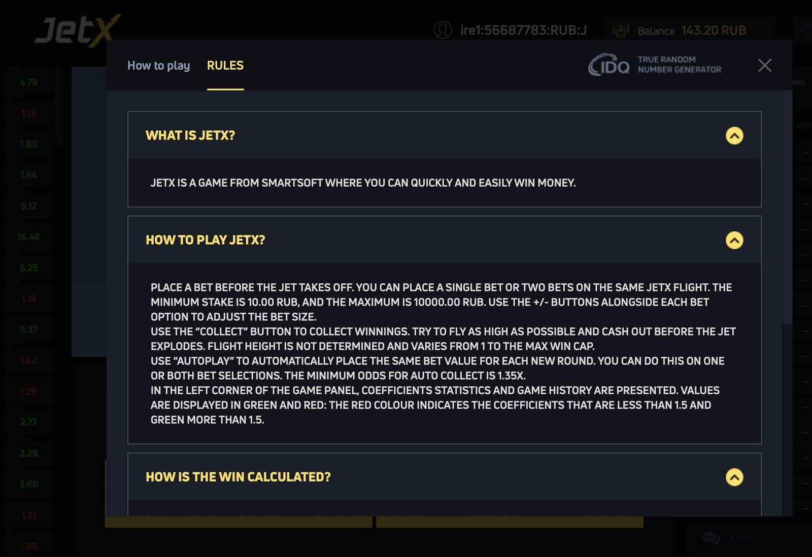 Daha əvvəl qeyd edildiyi kimi, məqsəd təyyarə qəzaya uğramazdan əvvəl nağd pul çıxarmaqdır jetx. Topla düyməsini sıxmaq dərhal turu bitirir və təbii ki, yığılmış çarpana vurulan mərcinizə bərabər pul mükafatı verir. Rulet slotlarında olduğu kimi, ekranın sol tərəfində sizə kömək edərsə, əvvəlki turların nəticələrini göstərən nəticələr tarixçəsi cədvəli var jetx.