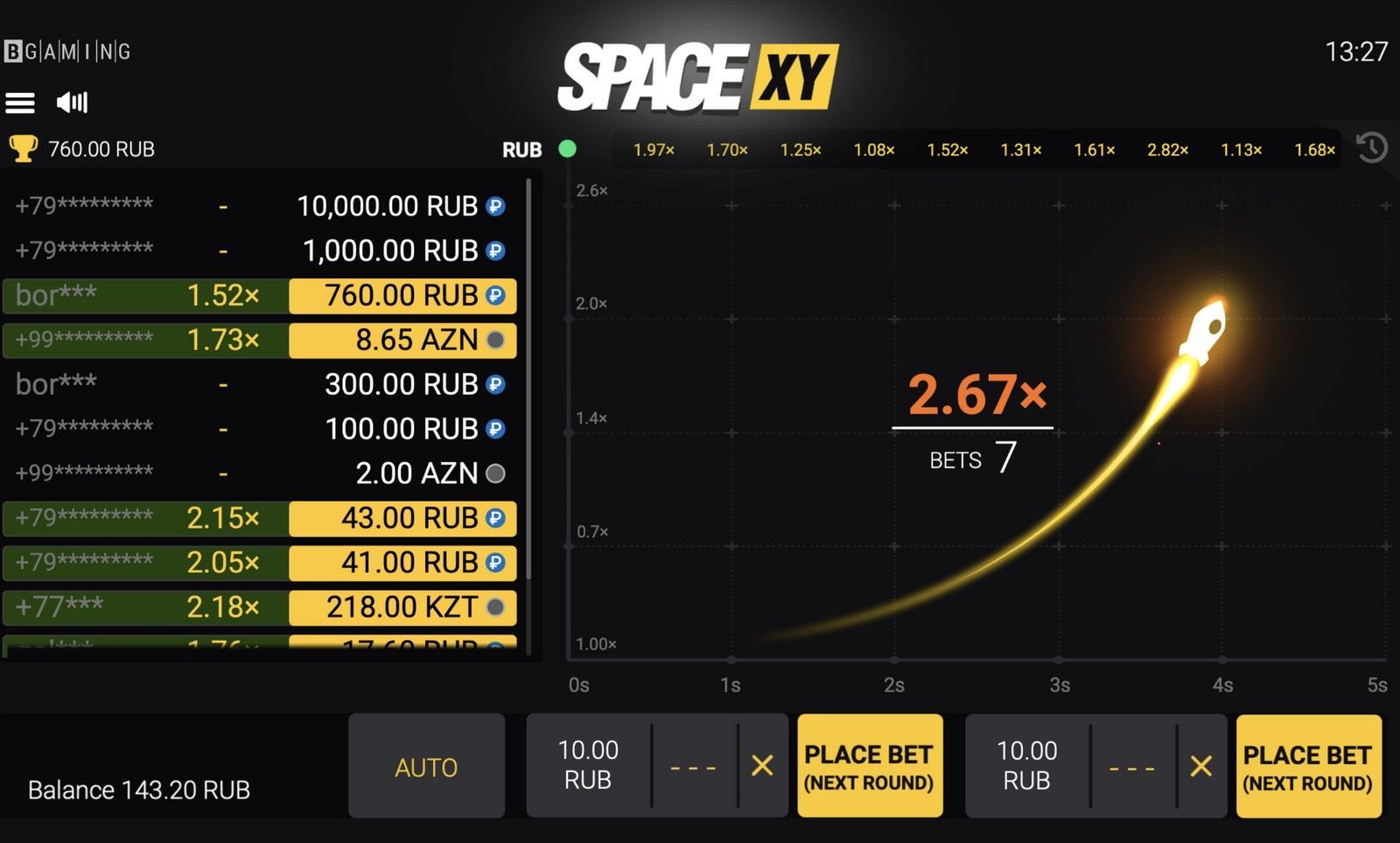Bu strategiyanı onlayn kazino pinup hesabında pulla məhdudlaşmayan oyunçular üçün seçməyi tövsiyə edirik. SpaceXY-da bu taktikadan istifadə edərkən biz x2-x3 əmsalları oynayırıq. 2-3 çarpan ilə nəticələrin ehtimalı 40-42% təşkil edir. Ancaq bəzən, öz qabiliyyətlərinizə arxayın olduğunuzda və uzun müddətdir ki, böyük bir çarpma olmadıqda, böyük əmsallarla sürüşdürərək bir şans əldə edə bilərsiniz, bu da bir az şansla sizə nəinki imkan verəcəkdir. qara qalmaq, həm də əmanət artırmaq.