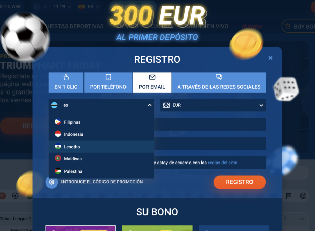 Seleccione su país, ingrese su dirección de correo electrónico y contraseña para su cuenta en el sitio web del casino. No olvide elegir la divisa de su cuenta.