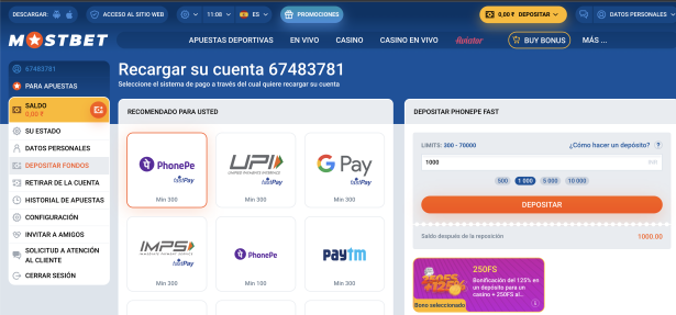 Después del registro, seleccione el sistema de pago a través del cual desea depositar fondos en su cuenta: