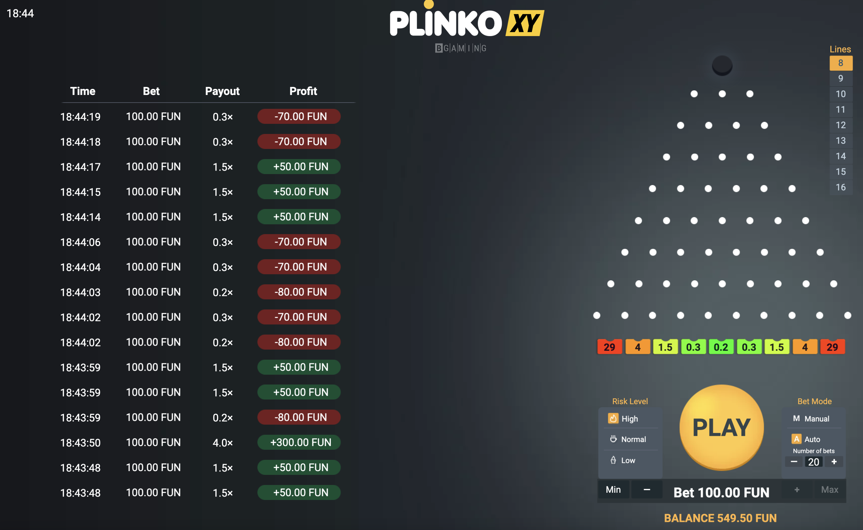 Plinko es una nueva generación de juegos de entretenimiento. ¡Gana muchas veces más en segundos! Plinko BGaming se basa en un sistema demostrablemente justo, que actualmente es la única garantía real de equidad en la industria del juego Plinko XY.