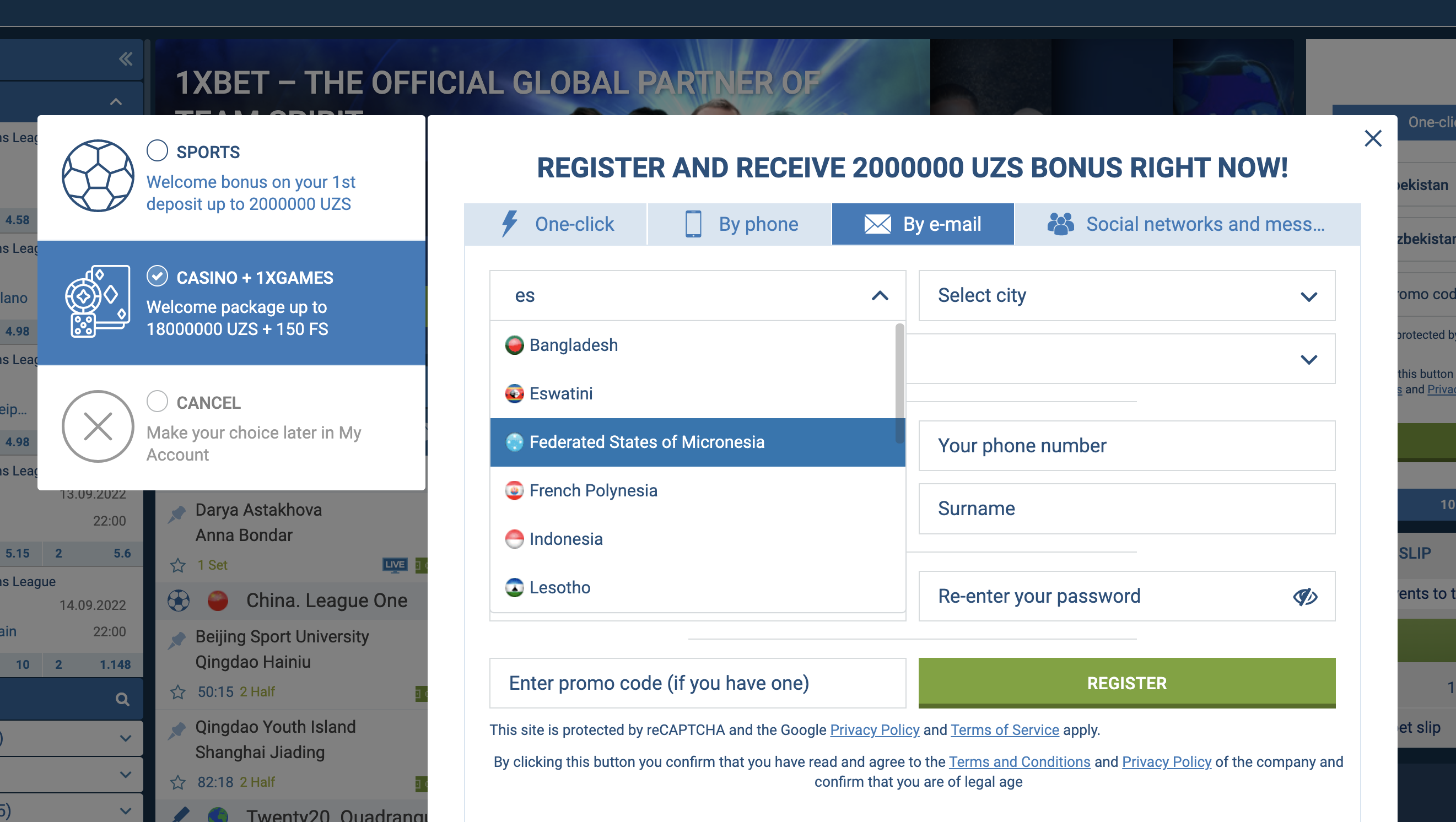 L’inscription au casino 1xbet ne prendra pas plus de 1 à 2 minutes et dépend de la méthode choisie :