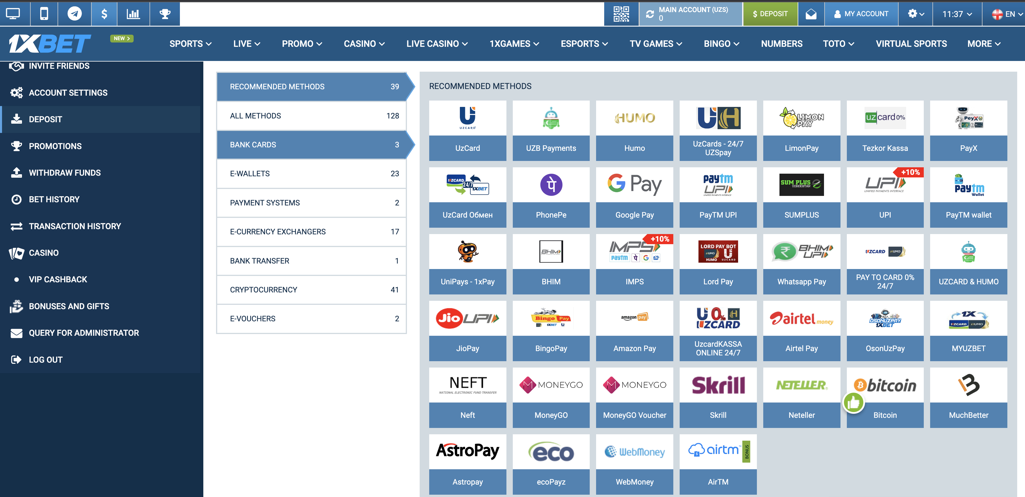 Le réapprovisionnement du compte dans 1xbet est possible de l’une des manières suivantes :