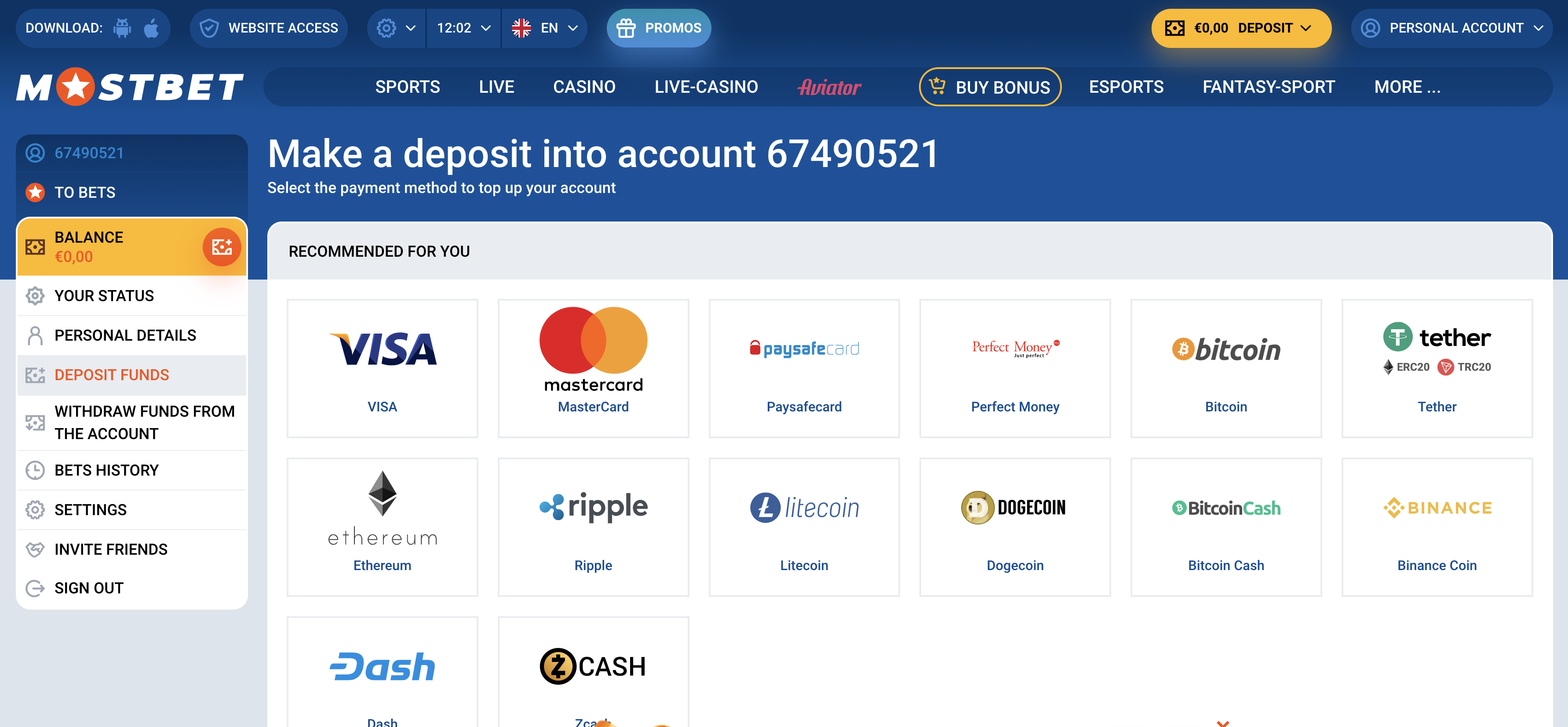 Réapprovisionnement du compte dans le casino virtuel Mostbet