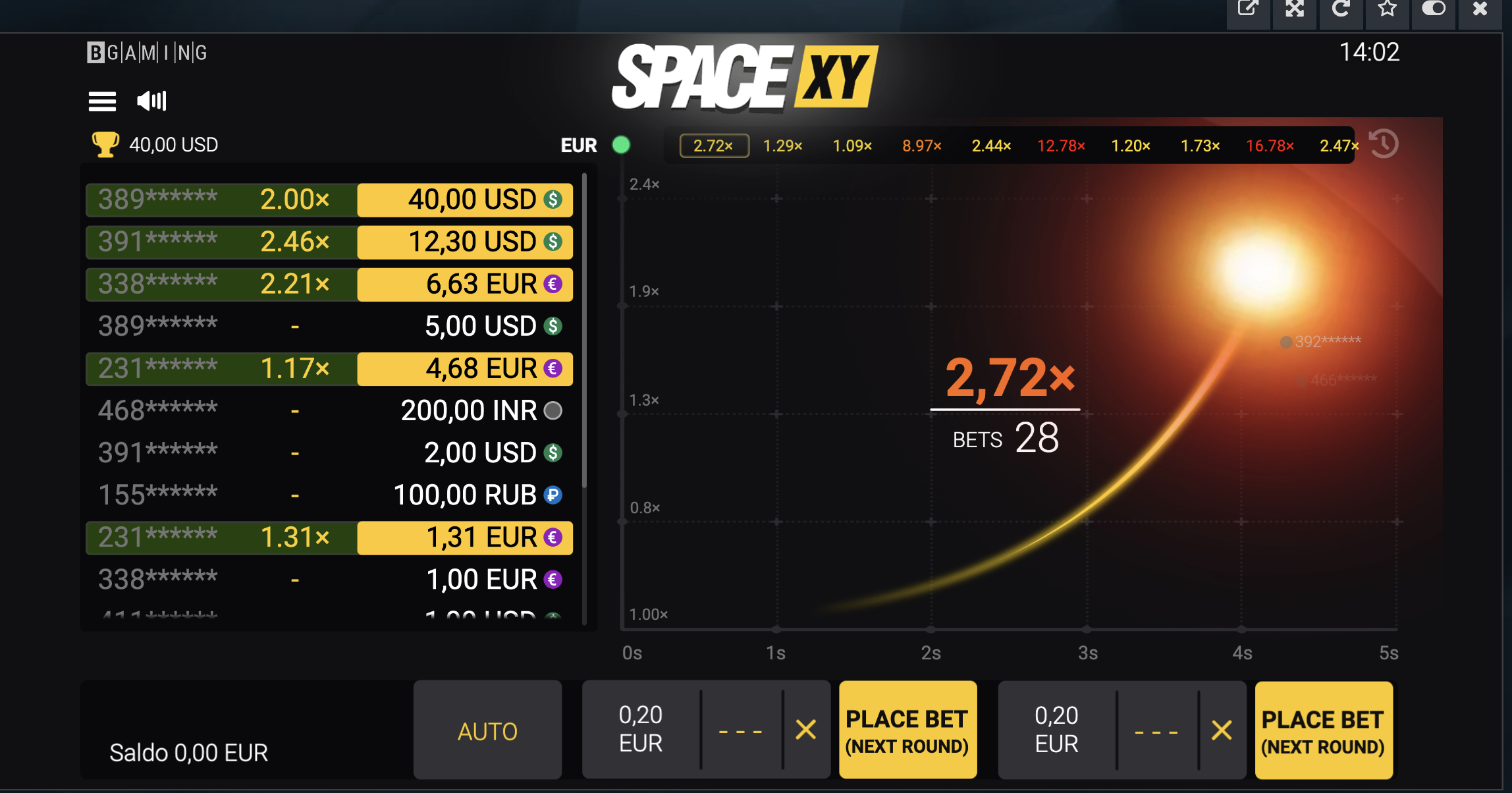 Vous pouvez jouer à Space XY sur 1xBet gratuitement et sans inscription. Le casino en ligne propose une version démo du jeu. En mode gratuit chez 1xBet, vous pouvez vous familiariser avec le jeu et tester les stratégies.