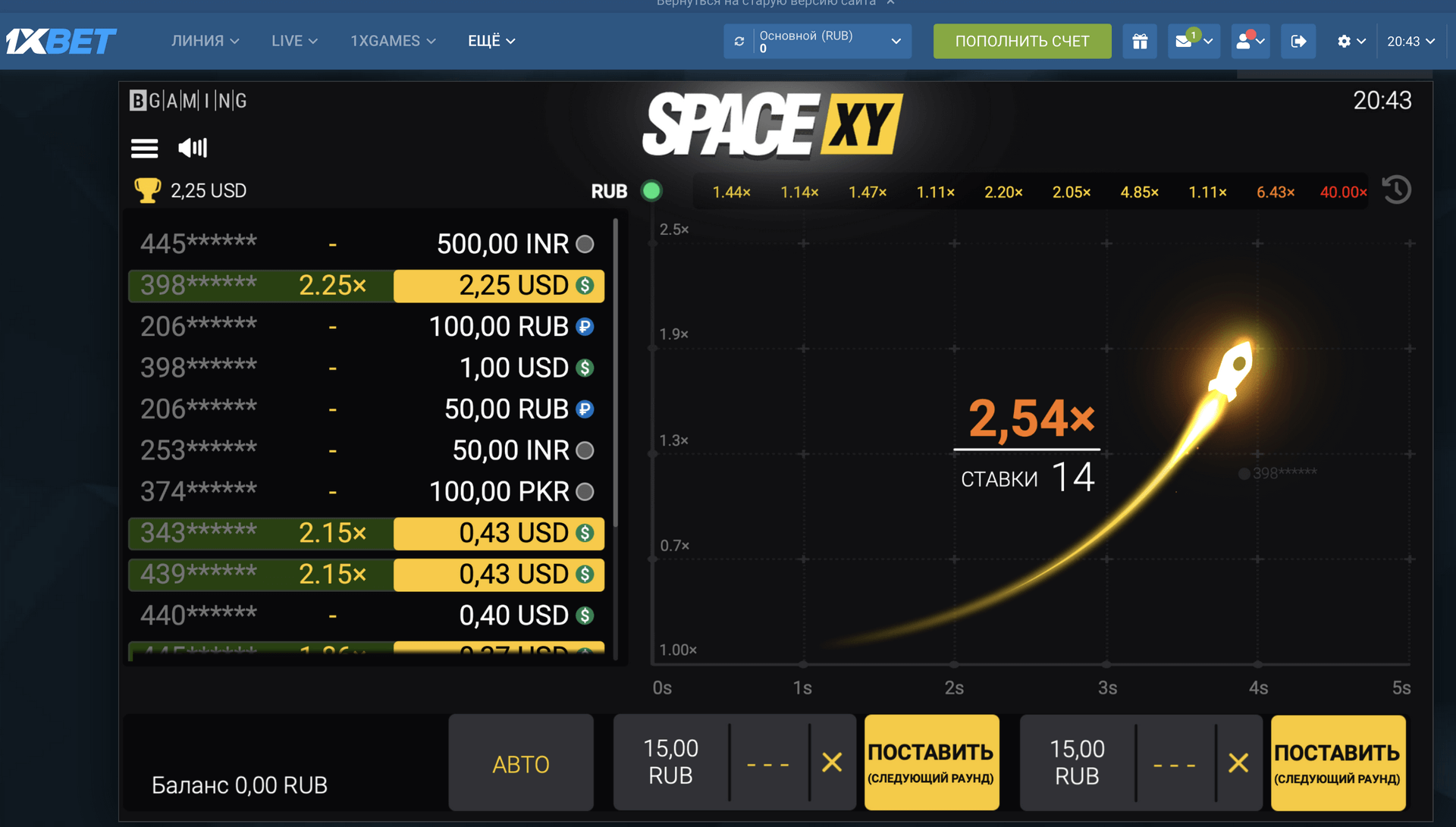 Space XY ойынын нақты ақшаға ойнау үшін пайдаланушы 1xBet онлайн казиносында тіркелуі керек.