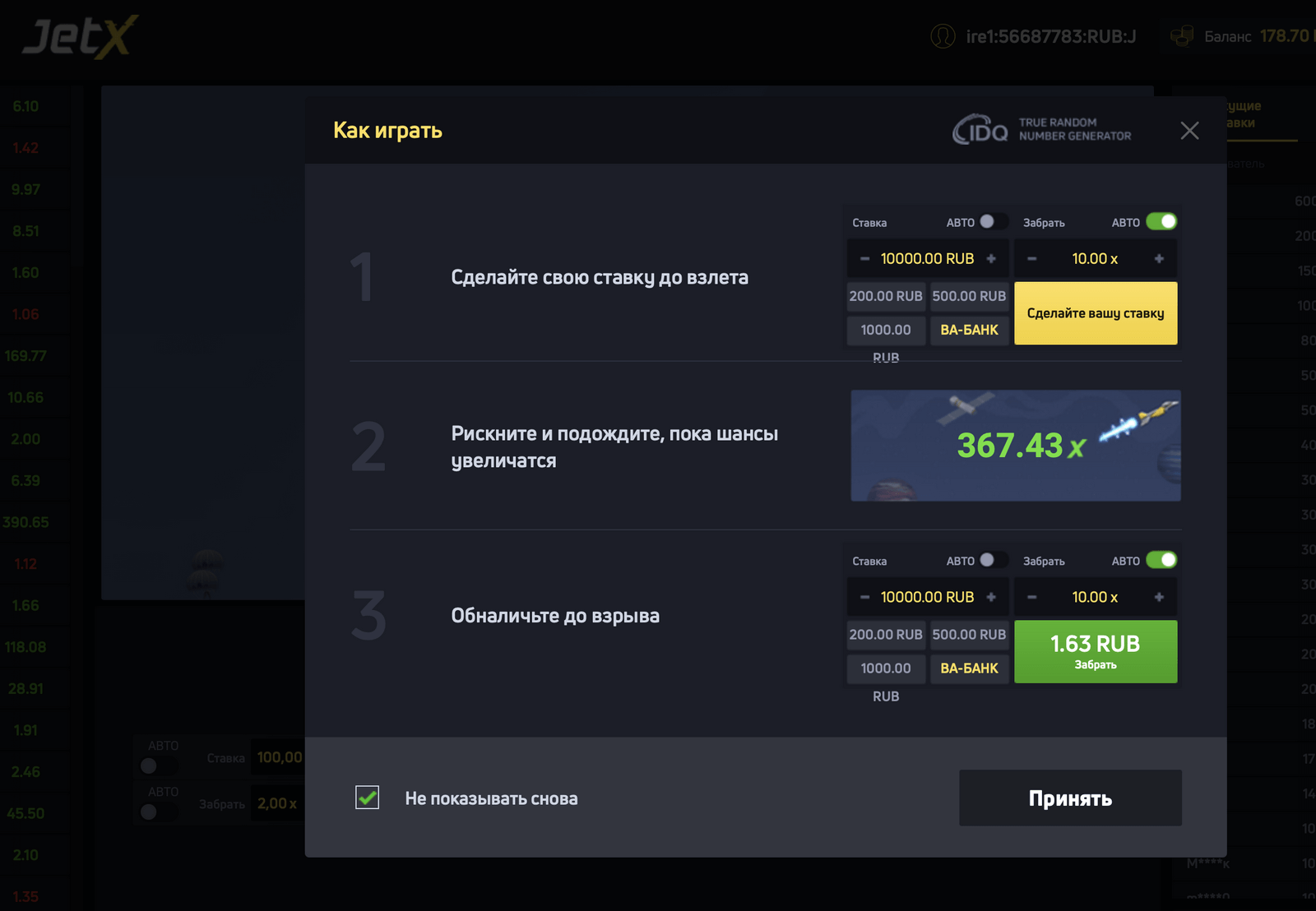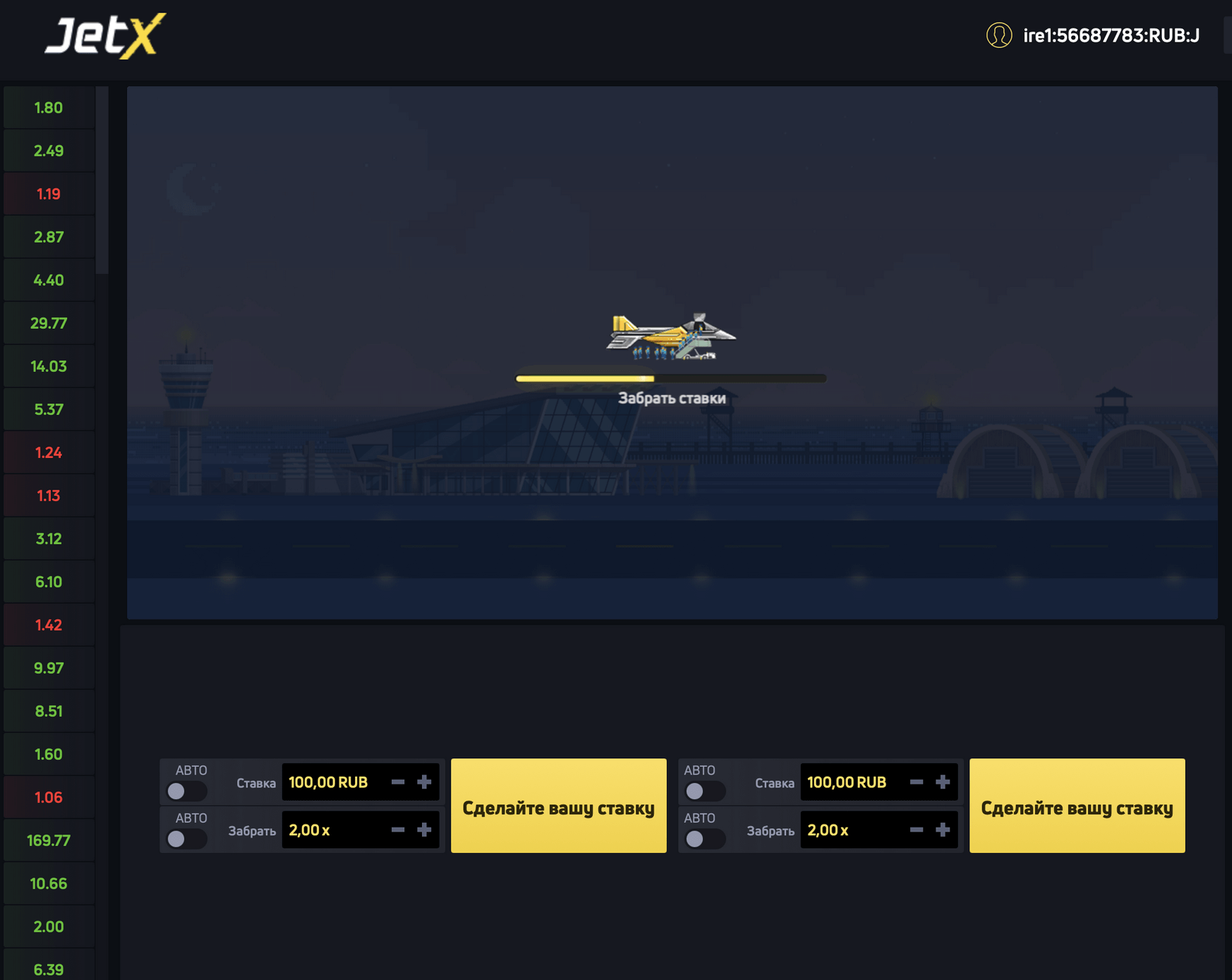 Ойынды жүктеу ойыншыларды біздің ұшағымыз ұшқалы тұрған ұшу-қону жолағына апарады. Ойыншылар ұтыс тігуді ол аяқталмай тұрып қояды және ставкалар бір раунд үшін 0,1 доллардан 600 долларға дейін қол жетімді jetx. Қарапайымдылық үшін жазықтықты көбейткіш қисығы деп атаймыз. Ол раунд jetx бастала салысымен өсе бастайды және ең әсерлісі оның қаншалықты биікке көтерілуінде шек жоқ. Осылайша, ұту жылдамдығы 0-ден шексіздікке дейін өзгереді. Дегенмен, мұндай биіктікке көтерілу – утопиялық сценарий, бірақ әлі де теориялық мүмкін Нені білу маңызды jet x