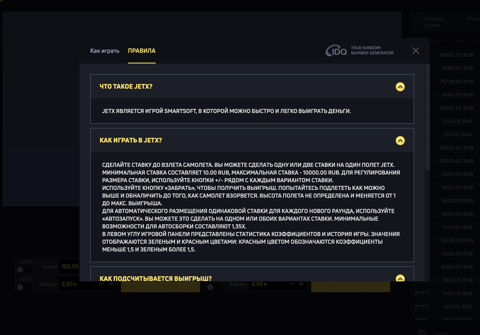 SmartSoft Gaming jet x идеясы жарылыс механикасына негізделген. Мұндағы мақсат – ұшақтың қаншалықты биіктікке шыдайтынын болжау және ол жарылғанша оны қолма-қол ақшаға айналдыру. Қарапайым жеткілікті, солай ма? Әрине, бірақ мультипликатордың қаншалықты жоғары болатынын болжау шынымен қиын міндет.