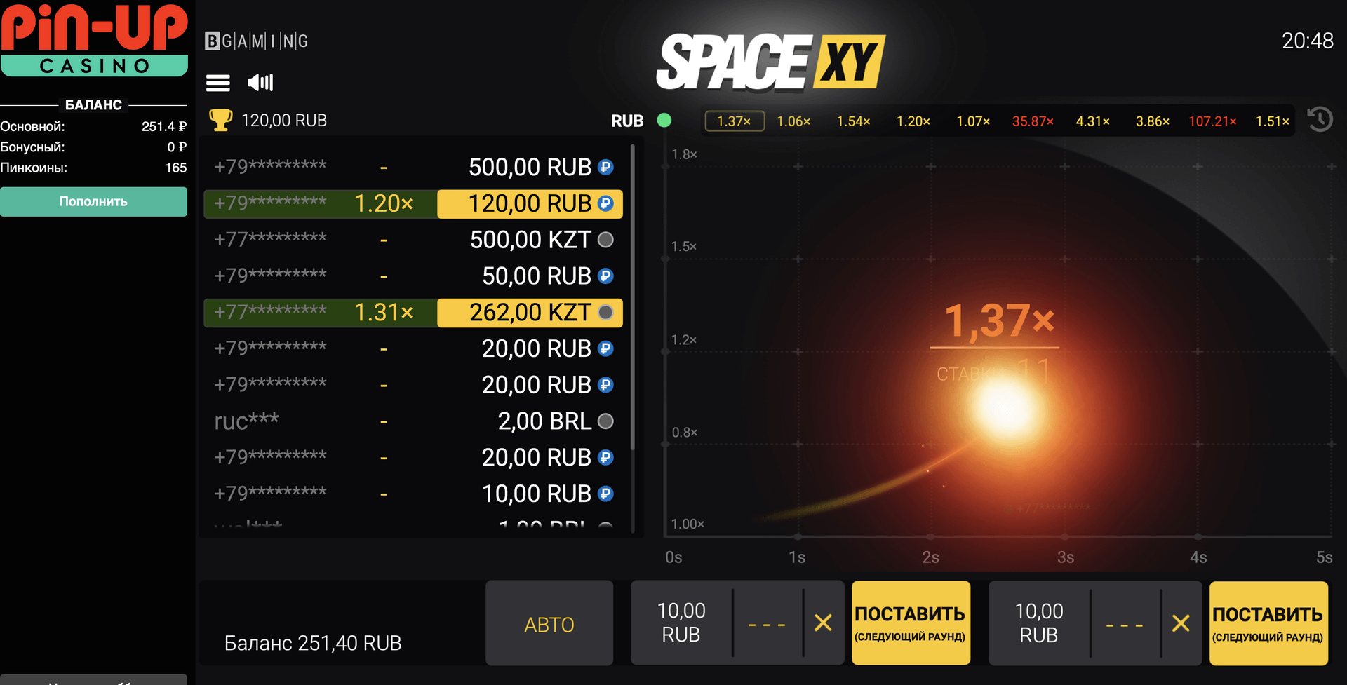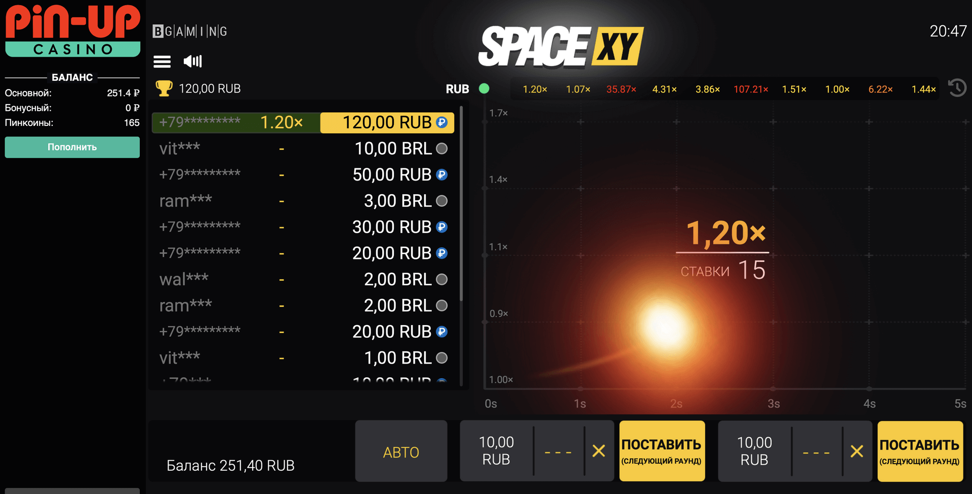 Бірнеше ай бұрын Space XY ойыны Pin-Up онлайн казиносында пайда болды. Ойыншылар бұл жаңалықты қуана қабылдады және Pin-Up жүйесінде Space XY-де тез ақша таба бастады. Артықшылықтары анық – Pin-Up казино ойыны жаңа, яғни бірінші рет ұтыс коэффициенттері максималды болады.