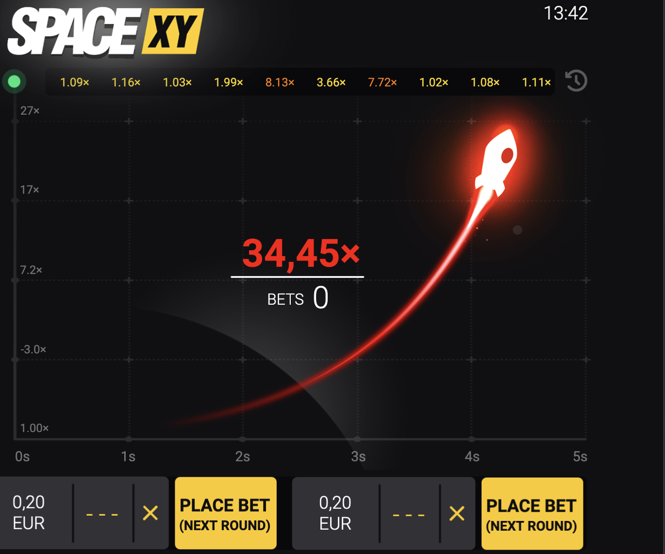 O jogo Crash (ou Space XY, já que o jogo é familiar para muitos jogadores com esse nome) é popular entre jogadores de todo o mundo. As razões para sua popularidade são muito simples – Crash representa a ideia de sorte, risco e chance. O foguete decola e então tudo depende de você. Você quer ganhar uma grande quantidade de dinheiro? Bem, arrisque-se e, talvez, o avião voe por muito tempo, aumentando seus ganhos. Ou você não quer correr grandes riscos e ganhar um pouco a cada vez, aumentando gradualmente o saldo da sua conta de jogo? Por que não, essa estratégia também funciona.