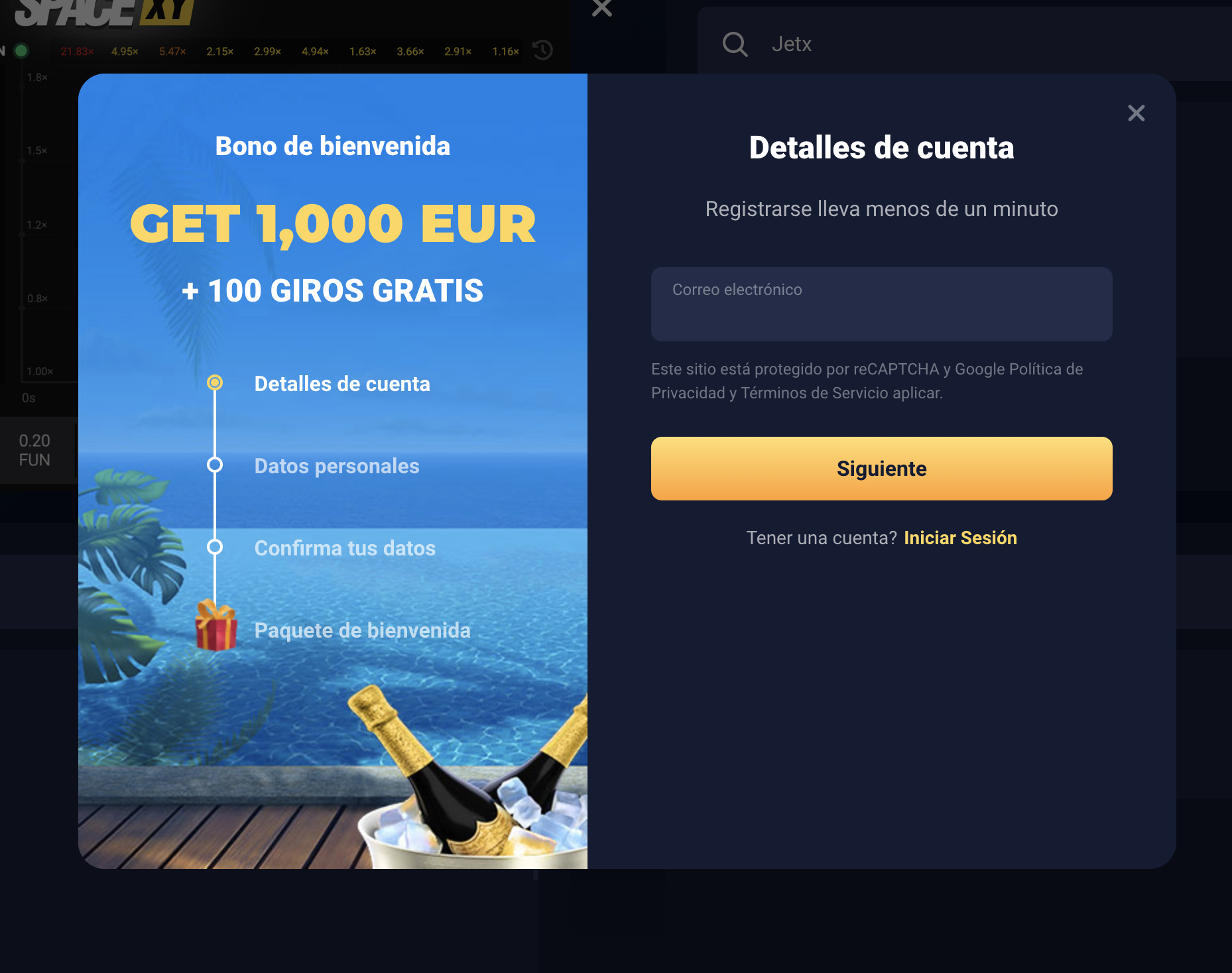 O registro no site oficial do JooCasino para jogar no Espaço XY é uma garantia da segurança de suas finanças e do fair play da Provably Fair. Além disso, o registro no jogo Space XY JooCasino permite reabastecer instantaneamente sua conta, aumentar seu saldo no cassino online JooCasino e sacar fundos ganhos sem dificuldades.