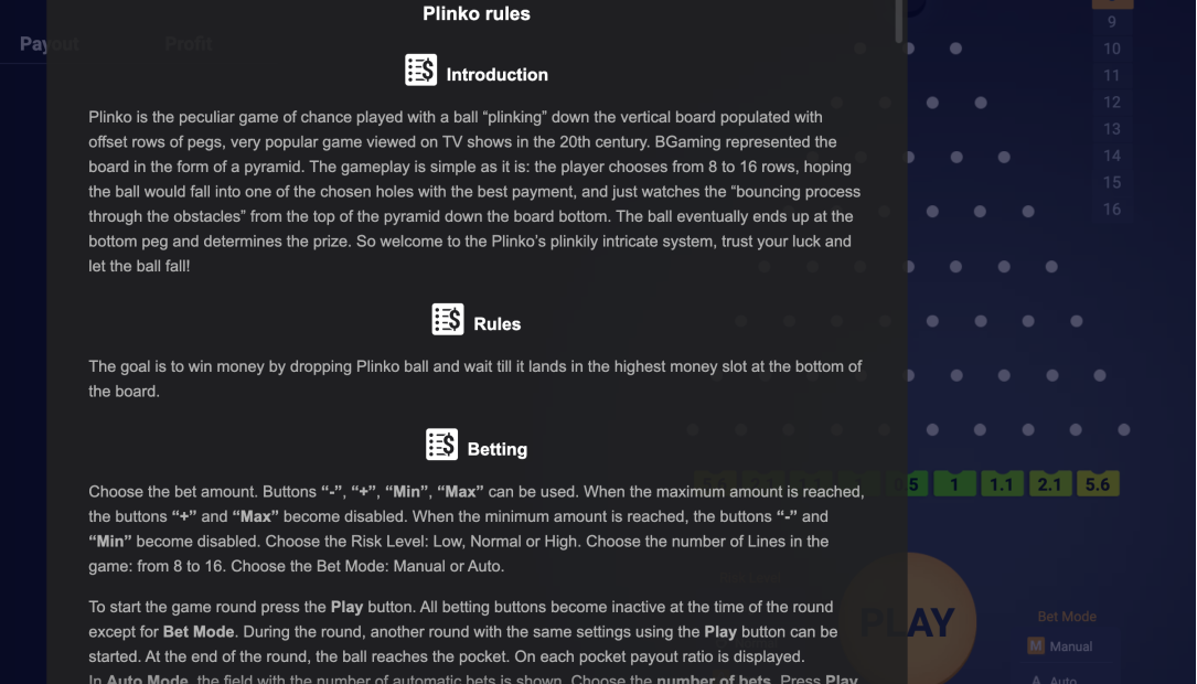 Oyun pasta kadar basit olsa da, insanlar Plinko’yu gerçekten seviyor ve burada bile psikolojik bir yön bulabiliyoruz. Felsefi olarak, Plinko yaşam için bir metafordur. Neden? Niye? Çünkü iyi şans ve mutsuzluk, neşe ve hayal kırıklığının bir karışımı ve genel olarak bir tahta şeklinde bir dizi duygu. Zirveye çıkıyorsunuz, topu itiyorsunuz ve adım adım, aradığınız ödülleri size vermesi için dua ediyorsunuz. Pandora’nın kutusu gibi değil mi? Umuyoruz, arzularız ve aynı zamanda hem verir hem de alır. Belki de bu yüzden insanlar Plinko’ya çekilir? Kim bilir… Her durumda, size kalmış!