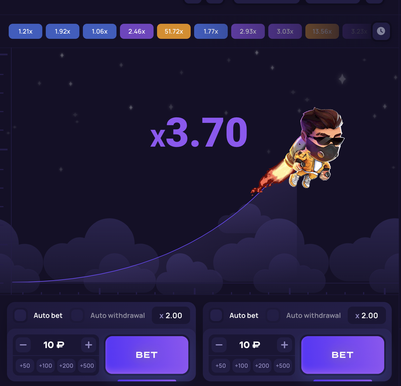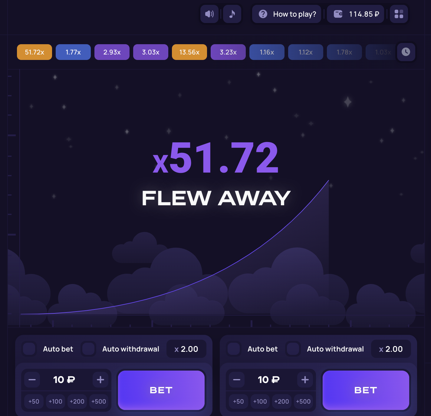 Неупередженість гри гарантована найновішим алгоритмом PROVABLY FAIR, який використовується для генерації коефіцієнта виграшу (того моменту, коли власник рюкзачка удачі “Улетів!”). Він формується до початку кожного раунду і не контролюється онлайн-казино. Це азарт у чистому вигляді!