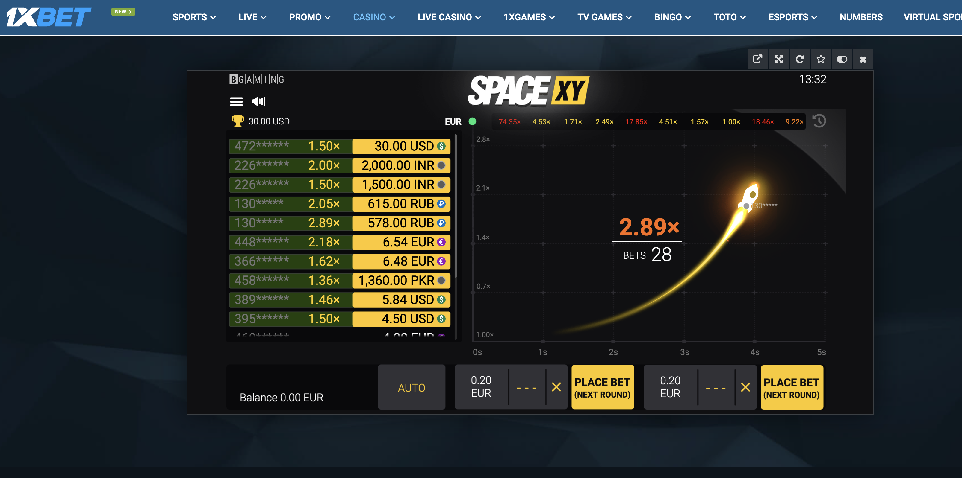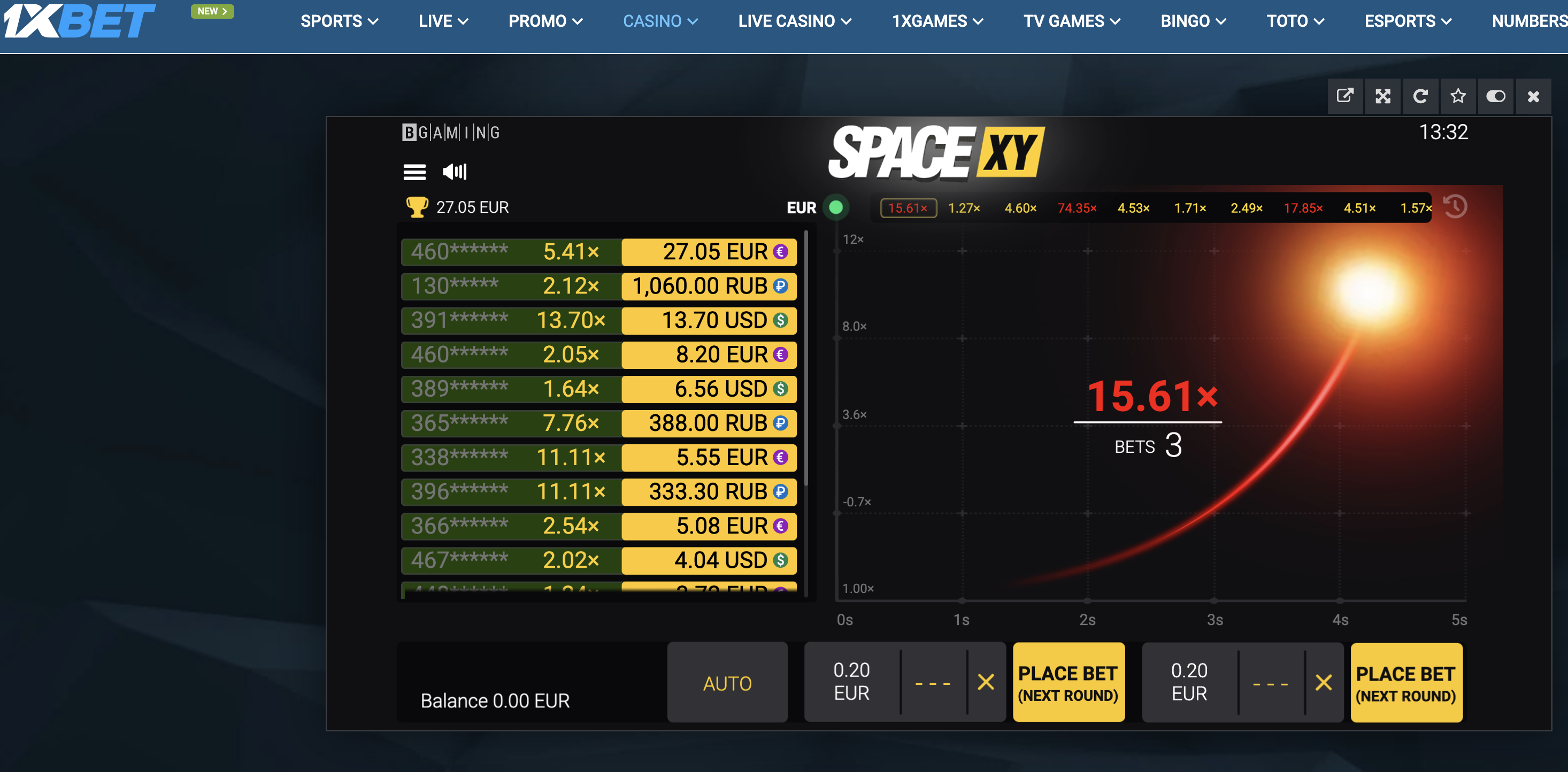 Ми радимо зареєструватись на офіційному сайті провайдера гри Crash (Space XY) – онлайн казино 1xbet.