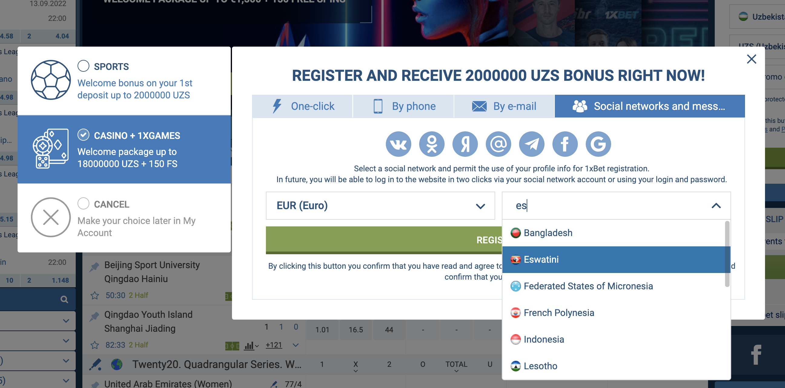 Реєстрація в казино 1xbet займе не більше 1-2 хвилин і залежить від обраного способу: