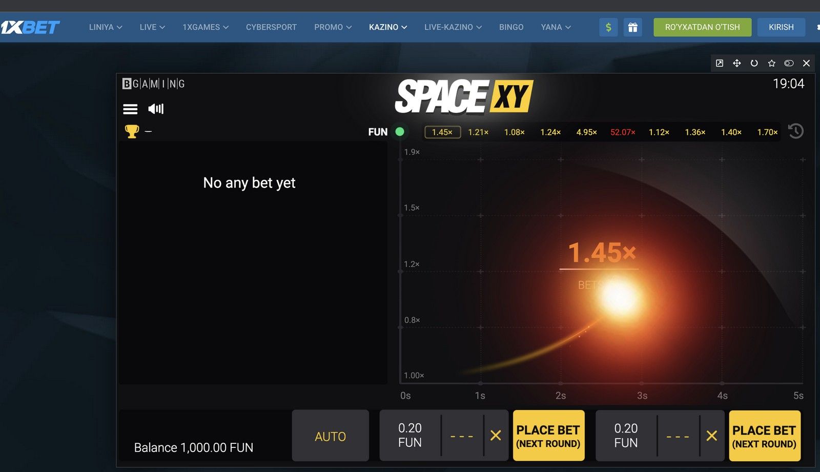 Haqiqiy pulga Space XY o’ynash uchun foydalanuvchi 1xBet onlayn kazinosida ro’yxatdan o’tishi kerak.