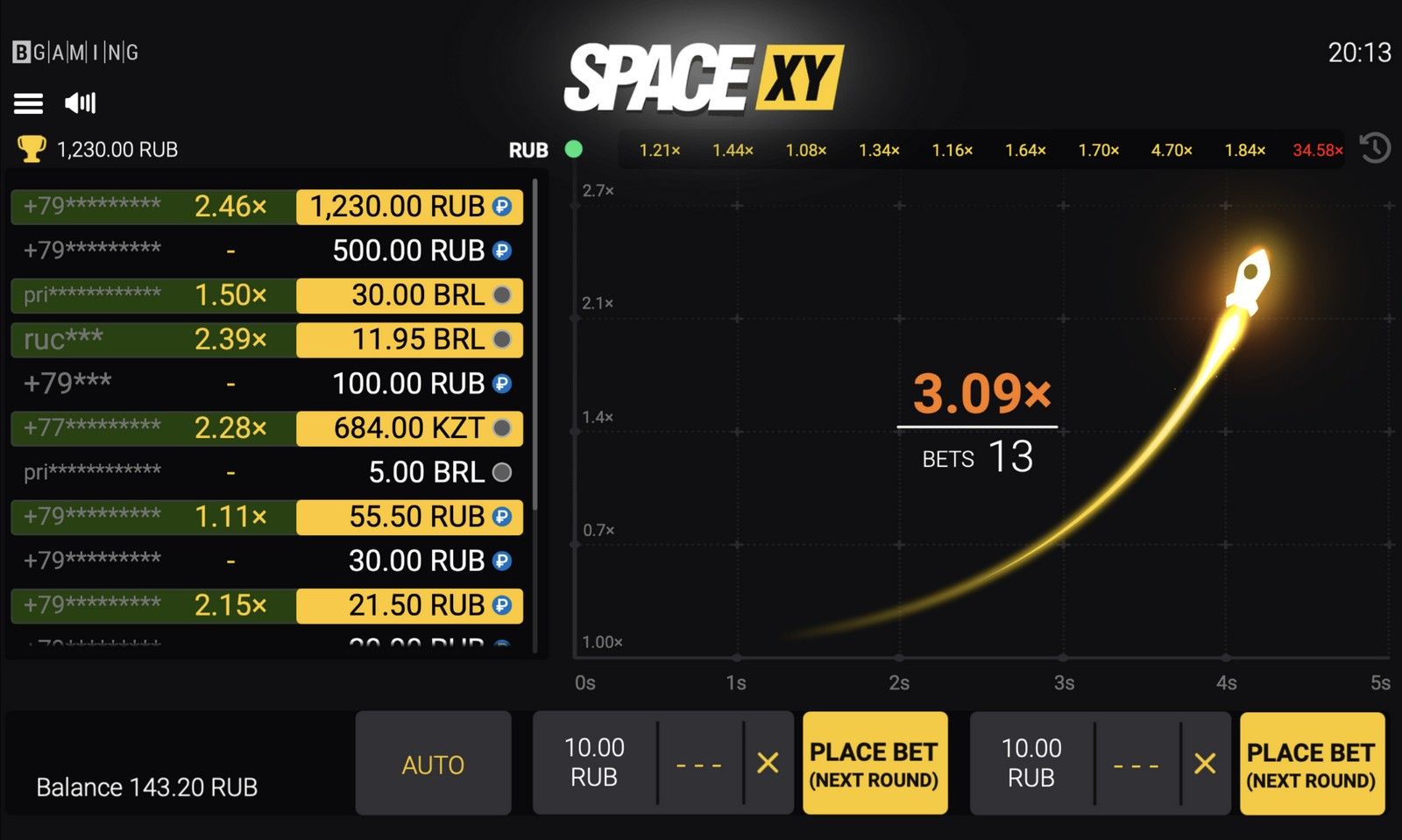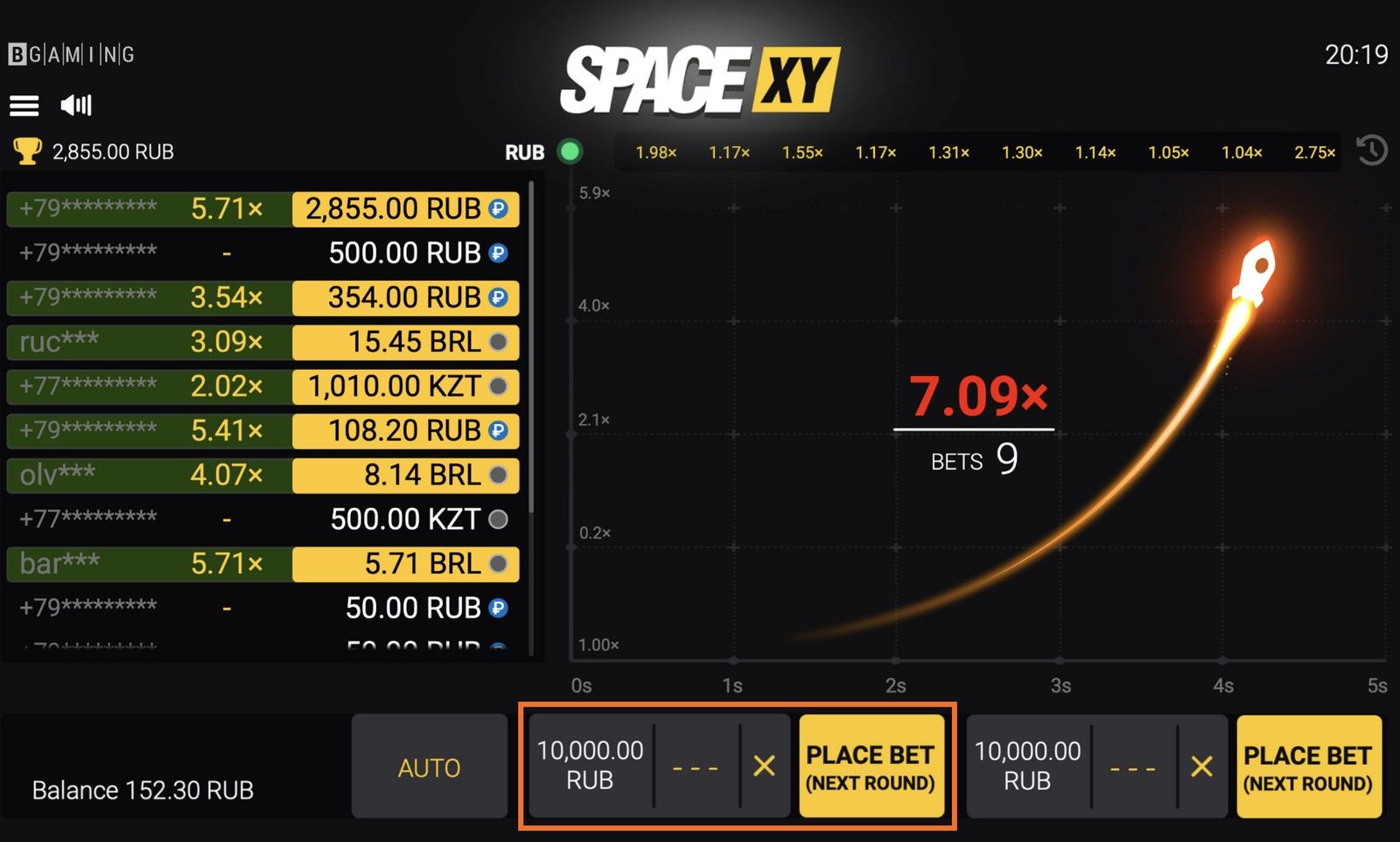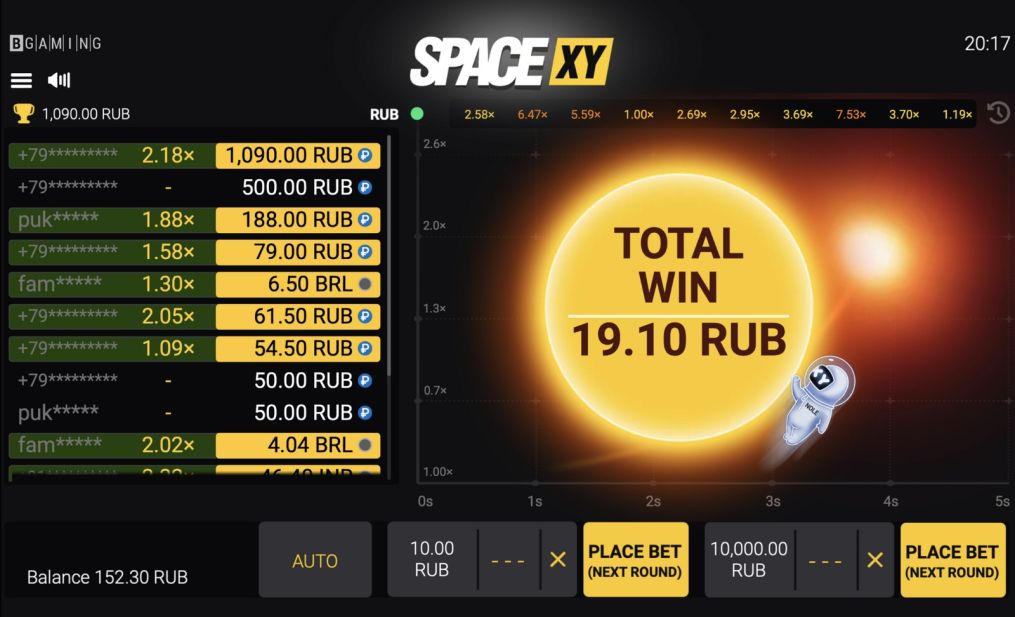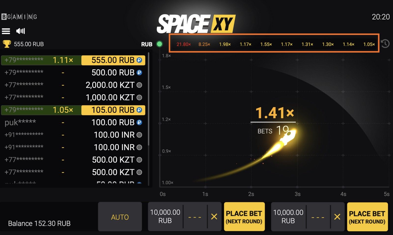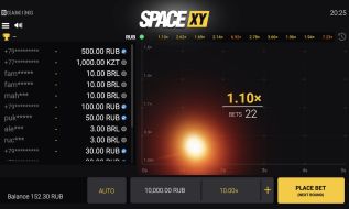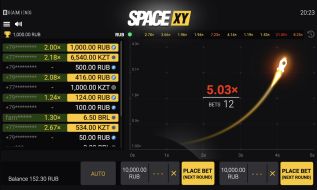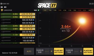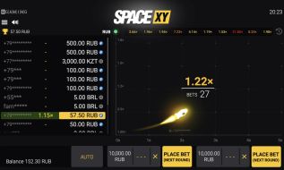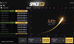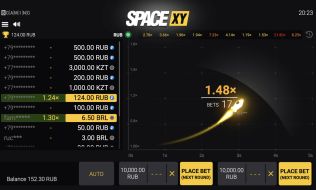 Space XY algoritmi iloji boricha sodda. Har bir turda siz pul tikasiz. Sun’iy intellekt ko’payishning o’sishini boshlaydi. Tasodifiy (tasodifiy) lahzada koeffitsientning o’sishi to’xtaydi va shu vaqt ichida ularni qaytarib ololmagan o’yinchilarning garovlari yonib ketadi.