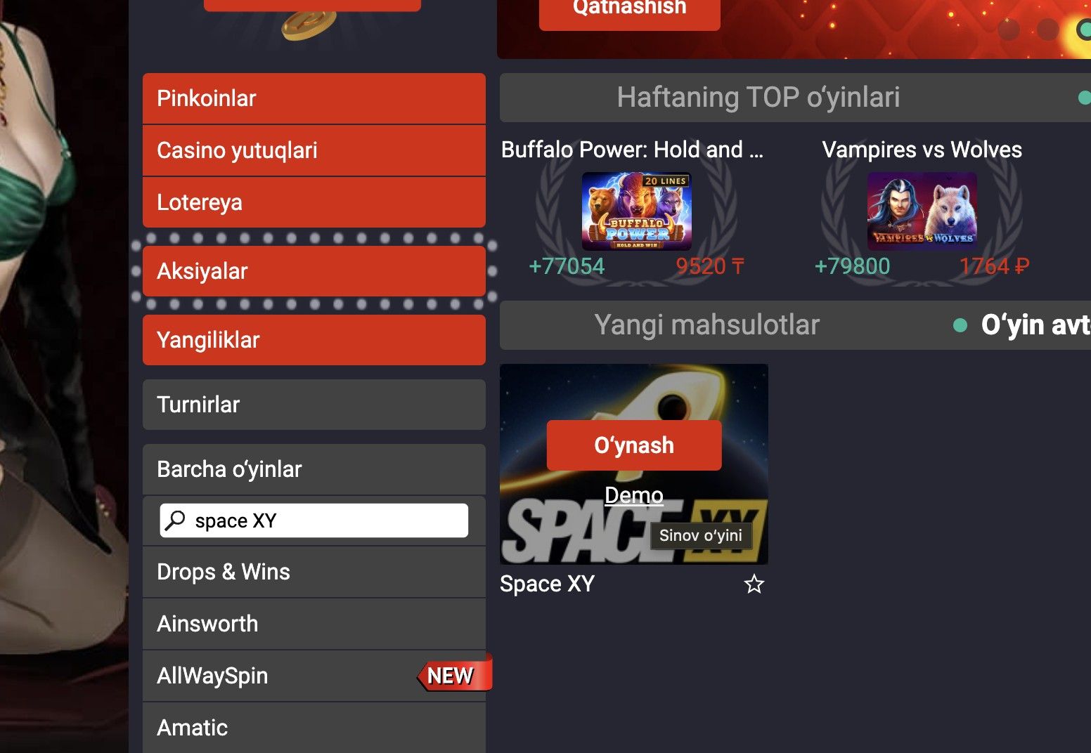 Space XY real pul oʻyini pin-up, mostbet, melbet, 1win va 1xbet onlayn kazinolariga koʻra 2020-yilda eng mashhurlaridan biri deb topildi.